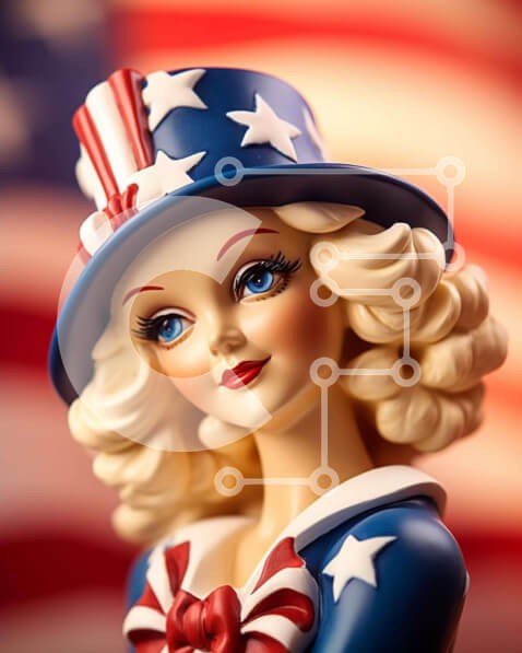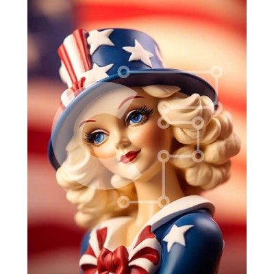 Υπάρχει δυνατότητα προσωποποίησης με δική σας φωτογραφία και προσαρμογής διαστάσεων κατόπιν παραγγελίας. Το συγεκεριμενο puzzle παρουσιαζει Η εικόνα δείχνει μια κούκλα στολισμένη με πατριωτική ενδυμασία, συμπεριλαμβανομένου ενός καπέλου αμερικανικής σημαίας. Η κούκλα, που χαρακτηρίζεται από ξανθά μαλλιά και μπλε μάτια, είναι πιθανότατα θέμα για τις γιορτές της 4ης Ιουλίου. Η παρθένα κατάστασή του υποδηλώνει έναν α