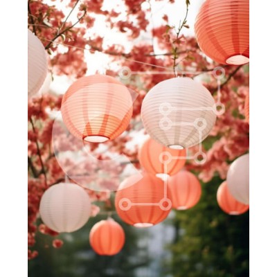 Υπάρχει δυνατότητα προσωποποίησης με δική σας φωτογραφία και προσαρμογής διαστάσεων κατόπιν παραγγελίας. Το συγεκεριμενο puzzle παρουσιαζει Η εικόνα παρουσιάζει πολλά χάρτινα φανάρια που κρέμονται από ένα δέντρο, με ροζ και λευκά άνθη στο βάθος. Τα φώτα τοποθετούνται σε διαφορετικά κλαδιά του δέντρου για να δημιουργήσουν ένα εφέ φωτισμού περιβάλλοντος για τη σκηνή. Είναι πιθανό ότι οι λαμπτήρες θα μπορούσαν να χρη