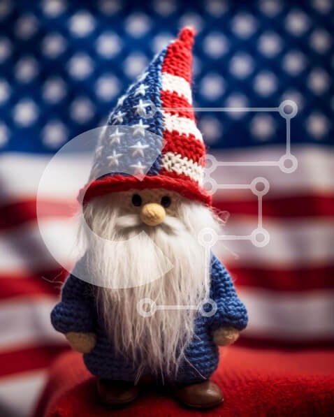 Υπάρχει δυνατότητα προσωποποίησης με δική σας φωτογραφία και προσαρμογής διαστάσεων κατόπιν παραγγελίας. Το συγεκεριμενο puzzle παρουσιαζει Ένας καλικάντζαρο με κροσέ που φορά ένα καπέλο με θέμα την αμερικανική σημαία και κάθεται μπροστά από ένα φόντο αμερικανικής σημαίας, πιθανότατα εκδηλώνοντας πατριωτικά αισθήματα ή γιορτάζει διακοπές. Μπορεί να χρησιμοποιηθεί ως διακόσμηση για επερχόμενες γιορτές όπως η 4η Ιου