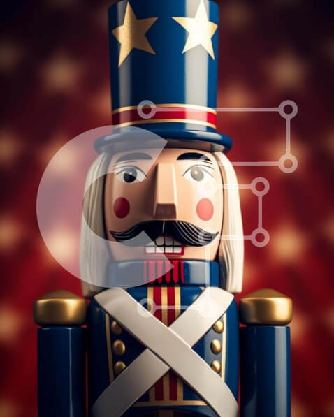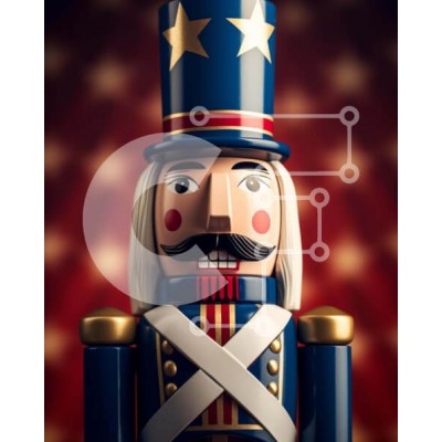 Υπάρχει δυνατότητα προσωποποίησης με δική σας φωτογραφία και προσαρμογής διαστάσεων κατόπιν παραγγελίας. Το συγεκεριμενο puzzle παρουσιαζει Η εικόνα δείχνει ένα παιχνίδι καρυοθραύστη τοποθετημένο μπροστά από ένα εντυπωσιακό κόκκινο, λευκό και μπλε φόντο. Ο καρυοθραύστης είναι ντυμένος με ρούχα εμπνευσμένα από τον στρατό, τονίζοντας το χαρακτηριστικό μουστάκι του. Αυτή η ρύθμιση προτείνει ένα πατριωτικό θέμα, που π