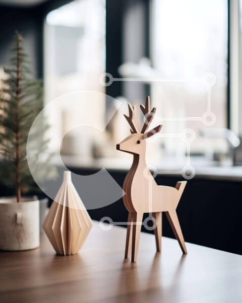 Υπάρχει δυνατότητα προσωποποίησης με δική σας φωτογραφία και προσαρμογής διαστάσεων κατόπιν παραγγελίας. Το συγεκεριμενο puzzle παρουσιαζει Αυτή η εικόνα παρουσιάζει ένα ξύλινο ειδώλιο ελαφιού τοποθετημένο σε ένα τραπέζι σε μια κουζίνα διακοσμημένη για την περίοδο των γιορτών. Το δωμάτιο είναι στολισμένο με πολλά φυτά σε γλάστρες, βάζα και ένα διακοσμητικό πεύκο στην τραπεζαρία. Δημιουργήστε μια εορταστική ατμόσφα