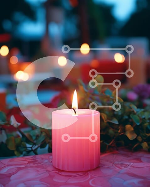 Υπάρχει δυνατότητα προσωποποίησης με δική σας φωτογραφία και προσαρμογής διαστάσεων κατόπιν παραγγελίας. Το συγεκεριμενο puzzle παρουσιαζει Η εικόνα δείχνει ένα ροζ κερί που φωτίζεται ανάμεσα σε μια οθόνη λουλουδιών και φυλλωμάτων. Γύρω από το κεντρικό κερί υπάρχουν διάφορα άλλα κεριά, μερικά από τα οποία φαίνεται να έχουν ανάψει πρόσφατα. Αυτή η ρύθμιση προτείνει μια ρύθμιση για εορτασμούς όπως γάμους, γενέθλια ή
