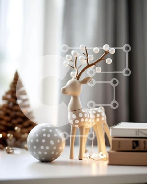 Υπάρχει δυνατότητα προσωποποίησης με δική σας φωτογραφία και προσαρμογής διαστάσεων κατόπιν παραγγελίας. Το συγεκεριμενο puzzle παρουσιαζει Αυτή η εικόνα παρουσιάζει έναν όμορφα διακοσμημένο χώρο για την περίοδο των γιορτών. Ένα ειδώλιο ελαφιού τοποθετείται πάνω από πολλά βιβλία και στολίδια, δημιουργώντας ένα εορταστικό επίκεντρο. Στο βάθος διακρίνονται διακοσμητικά χριστουγεννιάτικα δέντρα και κουκουνάρια, που π