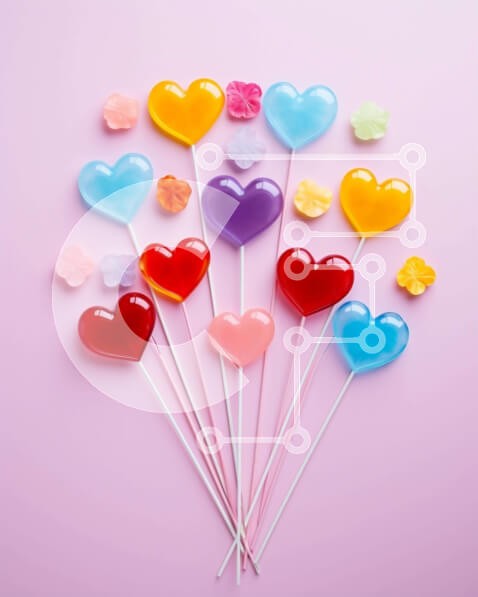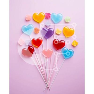 Υπάρχει δυνατότητα προσωποποίησης με δική σας φωτογραφία και προσαρμογής διαστάσεων κατόπιν παραγγελίας. Το συγεκεριμενο puzzle παρουσιαζει Αυτή η εικόνα παρουσιάζει μια ομάδα από πολύχρωμα γλειφιτζούρια σε σχήμα καρδιάς σε ξυλάκια, τοποθετημένα πάνω σε ροζ φόντο. Τα γλειφιτζούρια έρχονται σε διάφορα σχήματα και μεγέθη, όπως καρδιές, τετράγωνα και τρίγωνα. Επιπλέον, υπάρχουν και άλλοι τύποι καραμέλας, όπως καραμέλ