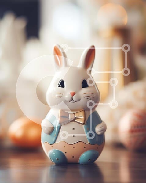 Υπάρχει δυνατότητα προσωποποίησης με δική σας φωτογραφία και προσαρμογής διαστάσεων κατόπιν παραγγελίας. Το συγεκεριμενο puzzle παρουσιαζει Αυτή η εικόνα παρουσιάζει ένα ειδώλιο λευκό κουνελάκι που κάθεται πάνω από ένα πασχαλινό αυγό, που περιβάλλεται από άλλα διακοσμητικά αντικείμενα, όπως αυγά και φλιτζάνια. Πολλά μικρά κομμάτια χαρτιού είναι διάσπαρτα γύρω από το τραπέζι, υποδηλώνοντας ότι μπορούν να χρησιμοποι
