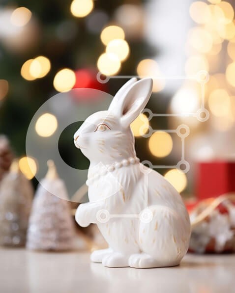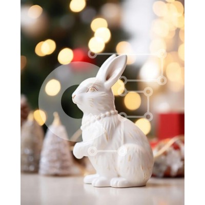 Υπάρχει δυνατότητα προσωποποίησης με δική σας φωτογραφία και προσαρμογής διαστάσεων κατόπιν παραγγελίας. Το συγεκεριμενο puzzle παρουσιαζει Αυτή η εικόνα παρουσιάζει ένα λευκό ειδώλιο κουνελιού που κάθεται σε ένα διακοσμητικό τραπέζι διακοσμημένο με χριστουγεννιάτικα φωτάκια και διακοσμητικά. Η γιορτινή ατμόσφαιρα ενισχύεται από τα μικρά δώρα που είναι διάσπαρτα γύρω από το τραπέζι, προσθέτοντας τη χαρά και τη ζεσ