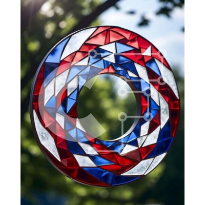 Υπάρχει δυνατότητα προσωποποίησης με δική σας φωτογραφία και προσαρμογής διαστάσεων κατόπιν παραγγελίας. Το συγεκεριμενο puzzle παρουσιαζει Η εικόνα παρουσιάζει ένα κυκλικό, κόκκινο, λευκό και μπλε γυάλινο στολίδι που κρέμεται από το δέντρο στο πρώτο πλάνο. Φαίνεται να είναι κατασκευασμένο από γυαλί, αλλά μπορεί επίσης να αποτελείται από άλλα υλικά, όπως μέταλλο ή ξύλο. Υπάρχουν πολλά δέντρα γύρω από το αντικείμεν