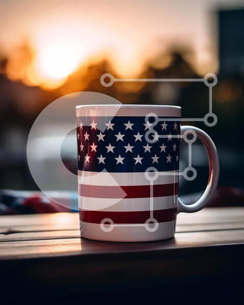 Υπάρχει δυνατότητα προσωποποίησης με δική σας φωτογραφία και προσαρμογής διαστάσεων κατόπιν παραγγελίας. Το συγεκεριμενο puzzle παρουσιαζει Η εικόνα παρουσιάζει μια λευκή κούπα καφέ με σχέδιο αμερικανικής σημαίας, τοποθετημένη σε μια επιφάνεια εργασίας μπροστά από το ηλιοβασίλεμα. Πολλά αυτοκίνητα βρίσκονται κοντά, υποδεικνύοντας ότι οι άνθρωποι απολαμβάνουν τον καφέ τους αυτή την ώρα της ημέρας. Ένα μοναδικό puz