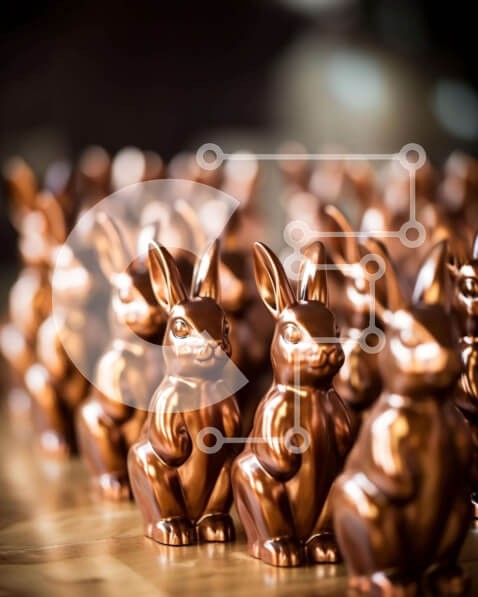 Υπάρχει δυνατότητα προσωποποίησης με δική σας φωτογραφία και προσαρμογής διαστάσεων κατόπιν παραγγελίας. Το συγεκεριμενο puzzle παρουσιαζει Η εικόνα παρουσιάζει μια ομάδα από καφέ ειδώλια κουνελιών, που πιθανώς χρησιμοποιούνται για μια γιορτή του Πάσχα ή ως διακοσμητικά αντικείμενα. Τα κομψά μεταλλικά κουνελάκια είναι τακτοποιημένα παραταγμένα σε ένα τραπέζι, προσθέτοντας μια πινελιά κομψότητας στη διακόσμηση. Έν