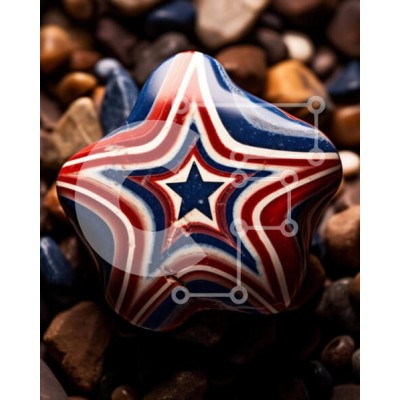 Υπάρχει δυνατότητα προσωποποίησης με δική σας φωτογραφία και προσαρμογής διαστάσεων κατόπιν παραγγελίας. Το συγεκεριμενο puzzle παρουσιαζει Η εικόνα απεικονίζει έναν κόκκινο, λευκό και μπλε βράχο σε σχήμα αστεριού τοποθετημένο πάνω από διάφορους βράχους και βότσαλα, αντιπροσωπεύοντας πιθανώς ένα πατριωτικό θέμα όπως η γιορτή της 4ης Ιουλίου. Γύρω από τον αστεροειδή βράχο υπάρχουν διάσπαρτες μικρές πέτρες που προσθ