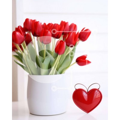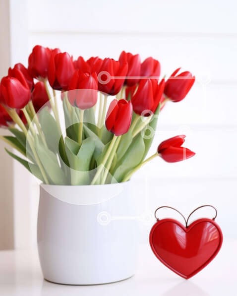 Υπάρχει δυνατότητα προσωποποίησης με δική σας φωτογραφία και προσαρμογής διαστάσεων κατόπιν παραγγελίας. Το συγεκεριμενο puzzle παρουσιαζει Αυτή η εικόνα δείχνει ένα λευκό βάζο γεμάτο με κόκκινες τουλίπες, τοποθετημένο στο κέντρο ενός τραπεζιού. Ένα κόκκινο βάζο σε σχήμα καρδιάς μπορεί επίσης να δει κανείς κοντά. Η ρύθμιση πιθανότατα προορίζεται για μια ειδική περίσταση όπως η Ημέρα του Αγίου Βαλεντίνου. Ένα μονα