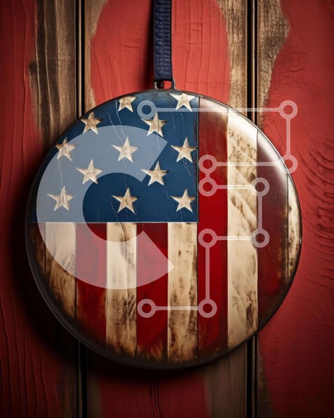 Υπάρχει δυνατότητα προσωποποίησης με δική σας φωτογραφία και προσαρμογής διαστάσεων κατόπιν παραγγελίας. Το συγεκεριμενο puzzle παρουσιαζει Η εικόνα απεικονίζει ένα στολίδι σε σχήμα αμερικανικής σημαίας που κρέμεται σε έναν κόκκινο ξύλινο τοίχο, πιθανώς για τον εορτασμό της Ημέρας της Ανεξαρτησίας ή ως διακοσμητικό ντεκόρ σπιτιού. Το αντικείμενο θεωρείται ότι είναι ξεπερασμένο ξύλο. Ένα μοναδικό puzzle που συνδυά