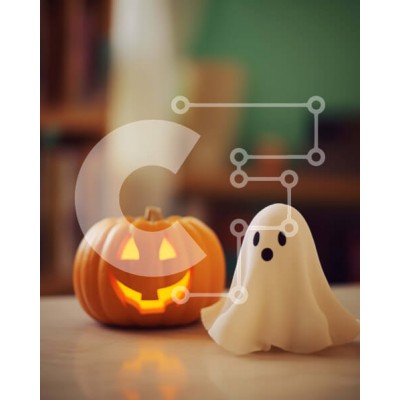 Υπάρχει δυνατότητα προσωποποίησης με δική σας φωτογραφία και προσαρμογής διαστάσεων κατόπιν παραγγελίας. Το συγεκεριμενο puzzle παρουσιαζει Αυτή η εικόνα παρουσιάζει ένα λευκό ειδώλιο φάντασμα που κάθεται πάνω από μια πορτοκαλί κολοκύθα, που πιθανότατα χρησιμοποιείται για τους εορτασμούς του Halloween. Το φόντο εμφανίζει πολλά ράφια, υποδηλώνοντας την παρουσία πολλών βιβλίων. Υπάρχει επίσης μια άλλη μικρή κολοκύθα