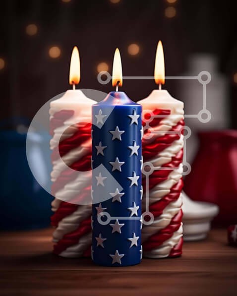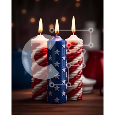 Υπάρχει δυνατότητα προσωποποίησης με δική σας φωτογραφία και προσαρμογής διαστάσεων κατόπιν παραγγελίας. Το συγεκεριμενο puzzle παρουσιαζει Η εικόνα παρουσιάζει τρία αναμμένα κεριά σε σχήμα αμερικανικής σημαίας τοποθετημένα σε ένα ξύλινο τραπέζι με κόκκινα, λευκά και μπλε διακοσμητικά. Η σκηνή είναι πατριωτική και θα μπορούσε να χρησιμοποιηθεί για τον εορτασμό εκδηλώσεων όπως η 4η Ιουλίου, η Ημέρα της Ανεξαρτησίας