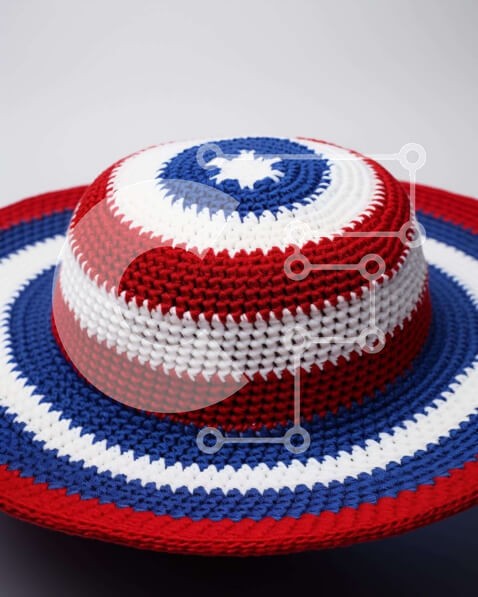 Υπάρχει δυνατότητα προσωποποίησης με δική σας φωτογραφία και προσαρμογής διαστάσεων κατόπιν παραγγελίας. Το συγεκεριμενο puzzle παρουσιαζει Η εικόνα παρουσιάζει ένα κροσέ κόκκινο, λευκό και μπλε καπέλο σε λευκό φόντο, που συμβολίζει τους πατριωτικούς εορτασμούς για την 4η Ιουλίου. Το σχέδιο του καπέλου περιλαμβάνει ένα σχέδιο σε σχήμα σημαίας στο χείλος με διάσπαρτα αστέρια, που αντιπροσωπεύουν τις Ηνωμένες Πολιτε
