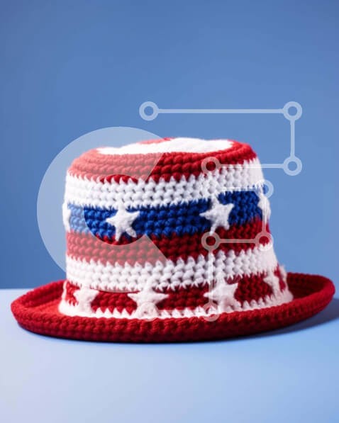 Υπάρχει δυνατότητα προσωποποίησης με δική σας φωτογραφία και προσαρμογής διαστάσεων κατόπιν παραγγελίας. Το συγεκεριμενο puzzle παρουσιαζει Η εικόνα παρουσιάζει ένα κόκκινο, λευκό και μπλε καπέλο με κροσέ με αστέρια και ρίγες πάνω του. Τοποθετείται πάνω από το μπλε φόντο, κάνοντάς το να φαίνεται σαν να είναι μέρος ενός γενικού πατριωτικού θέματος ή γιορτής. Μπορεί να υπάρχουν περισσότερα από ένα άτομα στη φωτογραφ