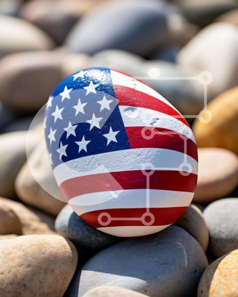 Υπάρχει δυνατότητα προσωποποίησης με δική σας φωτογραφία και προσαρμογής διαστάσεων κατόπιν παραγγελίας. Το συγεκεριμενο puzzle παρουσιαζει Η εικόνα παρουσιάζει ένα αυγό διακοσμημένο με την αμερικανική σημαία, τοποθετημένο πάνω από μια ομάδα βράχων. Το αυγό είναι πιθανό να βαφτεί για να τιμήσει την Ημέρα της Ανεξαρτησίας ή για πατριωτικούς λόγους. Ένας βράχος τοποθετείται σκόπιμα ανάμεσα σε άλλους βράχους στο βάθο