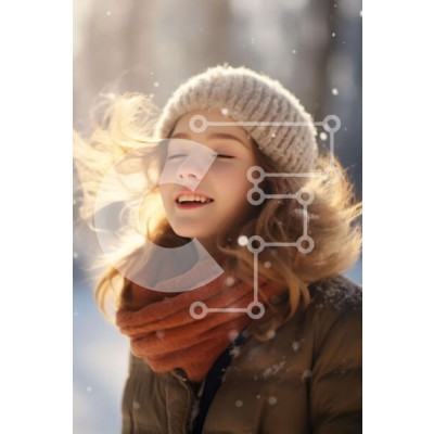 Υπάρχει δυνατότητα προσωποποίησης με δική σας φωτογραφία και προσαρμογής διαστάσεων κατόπιν παραγγελίας. Το συγεκεριμενο puzzle παρουσιαζει Αυτή η εικόνα παρουσιάζει μια νεαρή γυναίκα στο χιόνι, τα μάτια της κλειστά και ένα πλατύ χαμόγελο στο πρόσωπό της. Φοράει ένα πορτοκαλί καπέλο, κασκόλ και γάντια για να ζεσταίνεται στον κρύο καιρό. Τα σγουρά ή κυματιστά μαλλιά της προσθέτουν στη φυσική ομορφιά της και εκπέμπε
