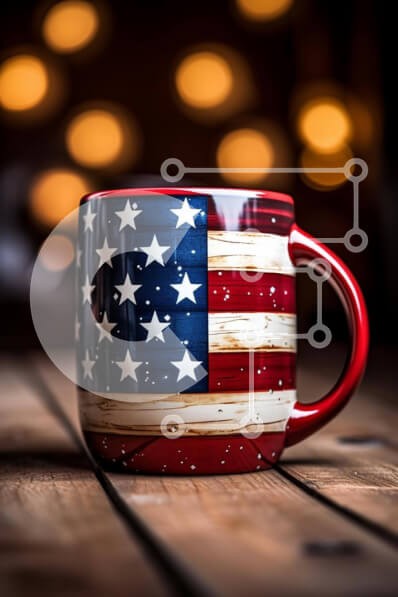 Υπάρχει δυνατότητα προσωποποίησης με δική σας φωτογραφία και προσαρμογής διαστάσεων κατόπιν παραγγελίας. Το συγεκεριμενο puzzle παρουσιαζει Η εικόνα δείχνει μια πατριωτική κόκκινη, λευκή και μπλε κούπα καφέ με σχέδιο αμερικανικής σημαίας. Η κούπα τοποθετείται σε ένα ξύλινο τραπέζι που φωτίζεται από το φως των κεριών, δημιουργώντας μια ζεστή ατμόσφαιρα. Γύρω από την κούπα υπάρχουν πολλά κεριά που προσθέτουν ζεστασι
