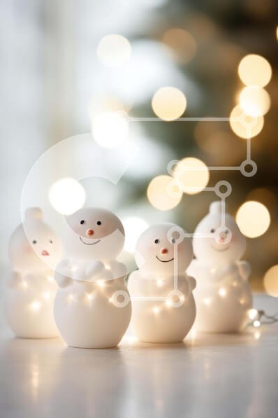 Υπάρχει δυνατότητα προσωποποίησης με δική σας φωτογραφία και προσαρμογής διαστάσεων κατόπιν παραγγελίας. Το συγεκεριμενο puzzle παρουσιαζει Αυτή η εικόνα παρουσιάζει τέσσερα λευκά ειδώλια χιονάνθρωπους που κάθονται σε ένα τραπέζι στο βάθος. Είναι ντυμένοι για τις γιορτές με κόκκινες και λευκές κορδέλες στο λαιμό τους. Η σκηνή φωτίζεται από πολλά φώτα, δημιουργώντας μια γιορτινή και χαρούμενη ατμόσφαιρα. Ένα μοναδ