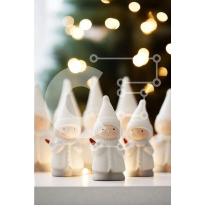 Υπάρχει δυνατότητα προσωποποίησης με δική σας φωτογραφία και προσαρμογής διαστάσεων κατόπιν παραγγελίας. Το συγεκεριμενο puzzle παρουσιαζει Αυτή η εικόνα παρουσιάζει μια ομάδα από λευκά ειδώλια gnome τοποθετημένα στην κορυφή ενός τραπεζιού, με ένα τεχνητό χριστουγεννιάτικο δέντρο στο φόντο. Η σκηνή φωτίζεται από πολλά μικρά φώτα, δημιουργώντας μια γιορτινή ατμόσφαιρα. Το μοναδικό στυλ και ο σχεδιασμός κάθε καλικάν