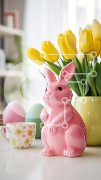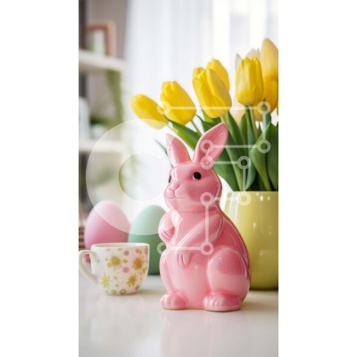 Υπάρχει δυνατότητα προσωποποίησης με δική σας φωτογραφία και προσαρμογής διαστάσεων κατόπιν παραγγελίας. Το συγεκεριμενο puzzle παρουσιαζει Η εικόνα παρουσιάζει ένα ροζ ειδώλιο κουνελιού που κάθεται μπροστά από κίτρινες τουλίπες, καθώς και πολλά φλιτζάνια και κούπες καφέ στο τραπέζι. Αυτά τα αντικείμενα είναι πιθανότατα μέρος μιας γιορτής με θέμα το Πάσχα, η οποία μπορεί να λαμβάνει χώρα αυτή την εποχή του χρόνου.