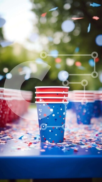 Υπάρχει δυνατότητα προσωποποίησης με δική σας φωτογραφία και προσαρμογής διαστάσεων κατόπιν παραγγελίας. Το συγεκεριμενο puzzle παρουσιαζει Η εικόνα παρουσιάζει ένα μπλε τραπέζι με πολλά κόκκινα, λευκά και μπλε χάρτινα ποτήρια τοποθετημένα πάνω του. Υπάρχουν επίσης διάσπαρτα κομφετί γύρω από το τραπέζι, που προσθέτουν στη γιορτινή ατμόσφαιρα της σκηνής. Είναι πιθανό το πάρτι να γίνεται σε υπαίθριο χώρο, καθώς μπορ