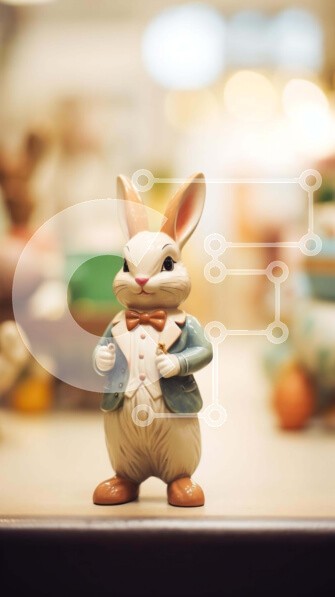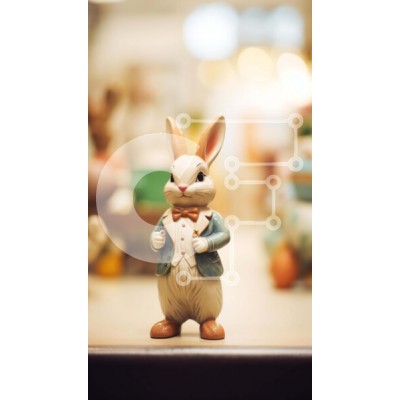 Υπάρχει δυνατότητα προσωποποίησης με δική σας φωτογραφία και προσαρμογής διαστάσεων κατόπιν παραγγελίας. Το συγεκεριμενο puzzle παρουσιαζει Η εικόνα παρουσιάζει ένα ειδώλιο λαγουδάκι που κάθεται πάνω από πολλά άλλα ειδώλια. Το κουνελάκι είναι ντυμένο με ένα κομψό κοστούμι και γραβάτα, υποδηλώνοντας ότι μπορεί να είναι μέρος μιας παράστασης με θέμα το Πάσχα. Φαίνεται να είναι κατασκευασμένο από κεραμικό ή πλαστικό.