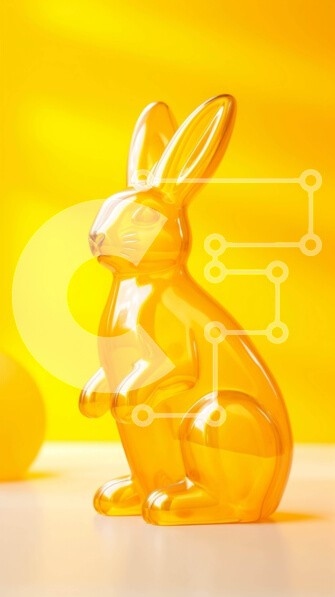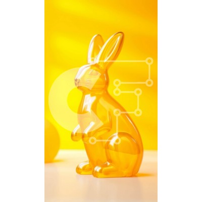 Υπάρχει δυνατότητα προσωποποίησης με δική σας φωτογραφία και προσαρμογής διαστάσεων κατόπιν παραγγελίας. Το συγεκεριμενο puzzle παρουσιαζει Αυτή η εικόνα παρουσιάζει ένα διαφανές πλαστικό ειδώλιο λαγουδάκι τοποθετημένο μπροστά από δύο κίτρινα αυγά. Το κουνελάκι είναι τοποθετημένο στη μέση του τραπεζιού, στραμμένο μακριά από την κάμερα, με κενό χώρο πίσω του για λόγους αποθήκευσης ή προβολής. Ένα μοναδικό puzzle π