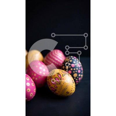 Υπάρχει δυνατότητα προσωποποίησης με δική σας φωτογραφία και προσαρμογής διαστάσεων κατόπιν παραγγελίας. Το συγεκεριμενο puzzle παρουσιαζει Αυτή η εικόνα παρουσιάζει μια ομάδα από πολύχρωμα βαμμένα πασχαλινά αυγά τακτοποιημένα σε μαύρο φόντο. Κάθε αυγό είναι διακοσμημένο με διαφορετικά σχέδια και χρώματα, με αποτέλεσμα μια οπτικά ελκυστική εμφάνιση. Τα ζωηρά χρώματα των αυγών, όπως το ροζ, το πορτοκαλί, το κίτρινο