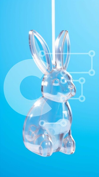 Υπάρχει δυνατότητα προσωποποίησης με δική σας φωτογραφία και προσαρμογής διαστάσεων κατόπιν παραγγελίας. Το συγεκεριμενο puzzle παρουσιαζει Η εικόνα παρουσιάζει ένα διαφανές γυάλινο στολίδι κουνελάκι που κρέμεται από την οροφή. Φαίνεται να είναι κατασκευασμένο από διαφανές πλαστικό και μπορεί να είναι μέρος μιας πασχαλινής διακόσμησης ή δώρου. Δεν υπάρχει ένδειξη του σκοπού ή της λειτουργίας του στην εικόνα, αλλά