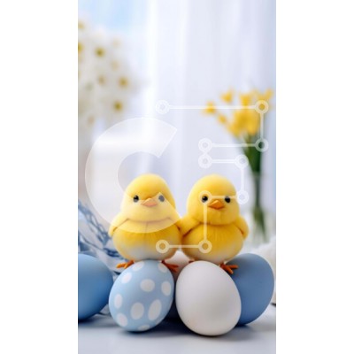 Υπάρχει δυνατότητα προσωποποίησης με δική σας φωτογραφία και προσαρμογής διαστάσεων κατόπιν παραγγελίας. Το συγεκεριμενο puzzle παρουσιαζει Η εικόνα παρουσιάζει δύο κίτρινα κοτόπουλα να κάθονται πάνω από μια ομάδα μπλε και λευκών πασχαλινών αυγών. Φαίνεται να απολαμβάνουν ο ένας την παρέα του άλλου, πιθανώς ως μέρος μιας γιορτής του Πάσχα. Επιπλέον, υπάρχουν μερικά λουλούδια στο βάθος, που μπορεί να υποδηλώνουν ότ