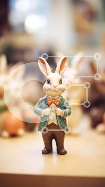 Υπάρχει δυνατότητα προσωποποίησης με δική σας φωτογραφία και προσαρμογής διαστάσεων κατόπιν παραγγελίας. Το συγεκεριμενο puzzle παρουσιαζει Αυτή η εικόνα παρουσιάζει ένα ειδώλιο λαγουδάκι του Πάσχα ντυμένο με κομψό κοστούμι και γραβάτα. Το ειδώλιο τοποθετείται μπροστά από πολλά άλλα ειδώλια, πιθανώς μέρος μιας έκθεσης με θέμα το Πάσχα. Φαίνεται επίσης να κάθεται πάνω από ένα άλλο ειδώλιο, πιθανώς για διακοσμητικού