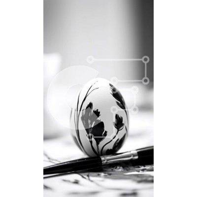 Υπάρχει δυνατότητα προσωποποίησης με δική σας φωτογραφία και προσαρμογής διαστάσεων κατόπιν παραγγελίας. Το συγεκεριμενο puzzle παρουσιαζει Αυτή η εικόνα παρουσιάζει ένα όμορφα βαμμένο αυγό που στηρίζεται σε μια επιφάνεια στολισμένη με λουλουδάτα σχέδια. Το αυγό είναι κυρίως λευκό με περίπλοκα μαύρα λουλουδάτα μοτίβα, που επιδεικνύουν μια καλλιτεχνική πινελιά. Ένα πινέλο βρίσκεται δίπλα στο αυγό, υποδηλώνοντας μια