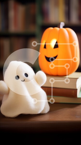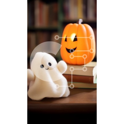 Υπάρχει δυνατότητα προσωποποίησης με δική σας φωτογραφία και προσαρμογής διαστάσεων κατόπιν παραγγελίας. Το συγεκεριμενο puzzle παρουσιαζει Αυτή η εικόνα παρουσιάζει ένα βελούδινο παιχνίδι σε σχήμα φαντάσματος που κάθεται σε ένα ξύλινο τραπέζι δίπλα σε μερικά βιβλία, δημιουργώντας μια σκηνή με θέμα το Halloween. Το πορτοκαλί κερί που λάμπει στο σκοτάδι στο φόντο προσθέτει μια απόκοσμη ατμόσφαιρα. Ένα μοναδικό puz