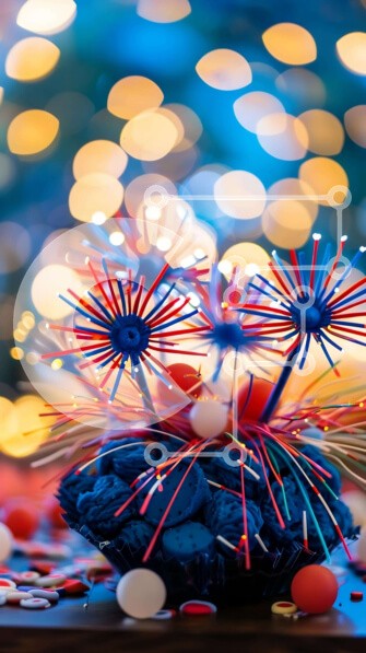 Υπάρχει δυνατότητα προσωποποίησης με δική σας φωτογραφία και προσαρμογής διαστάσεων κατόπιν παραγγελίας. Το συγεκεριμενο puzzle παρουσιαζει Η εικόνα δείχνει μια ζωντανή επίδειξη πυροτεχνημάτων σε κόκκινες, λευκές και μπλε αποχρώσεις, διατεταγμένες ώστε να σχηματίζουν ένα ανεστραμμένο σχήμα βάζου. Το κομφετί είναι σκορπισμένο στο τραπέζι, έτοιμο για εορταστική διακόσμηση για εκδηλώσεις όπως η Ημέρα της Ανεξαρτησίας