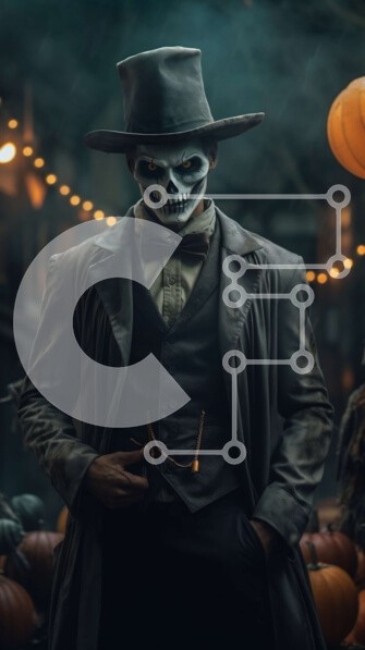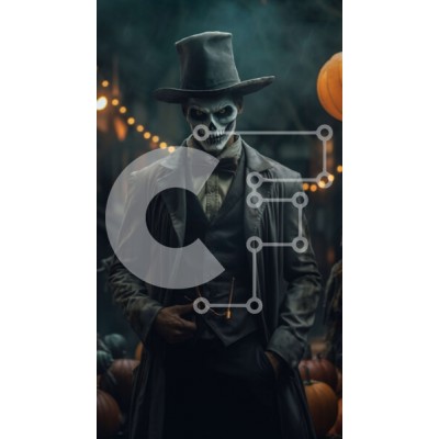 Υπάρχει δυνατότητα προσωποποίησης με δική σας φωτογραφία και προσαρμογής διαστάσεων κατόπιν παραγγελίας. Το συγεκεριμενο puzzle παρουσιαζει Αυτή η ασπρόμαυρη εικόνα απεικονίζει έναν άνδρα με καπέλο και μαύρο παλτό, κρατώντας ένα μπαστούνι στο ένα χέρι. Φοράει μάσκα κρανίου και στέκεται μπροστά σε μια ομάδα κολοκύθες. Η απόκοσμη εικόνα είναι ιδανική για το Halloween ή οποιαδήποτε άλλη ανατριχιαστική περίσταση. Ένα