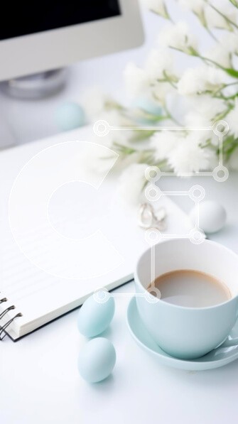 Υπάρχει δυνατότητα προσωποποίησης με δική σας φωτογραφία και προσαρμογής διαστάσεων κατόπιν παραγγελίας. Το συγεκεριμενο puzzle παρουσιαζει Αυτή η εικόνα παρουσιάζει ένα γαλήνιο ανοιξιάτικο διάλειμμα με ένα φλιτζάνι καφέ, ένα άδειο σημειωματάριο και μερικά πασχαλινά αυγά στο τραπέζι. Η παρουσία λουλουδιών και ενός φορητού υπολογιστή προσθέτει στην αισθητική γοητεία και προτείνει ένα συνδυασμό εργασίας και χαλάρωση