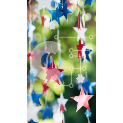 Υπάρχει δυνατότητα προσωποποίησης με δική σας φωτογραφία και προσαρμογής διαστάσεων κατόπιν παραγγελίας. Το συγεκεριμενο puzzle παρουσιαζει Η εικόνα παρουσιάζει μια ομάδα από κόκκινα, λευκά και μπλε χάρτινα αστέρια που κρέμονται από τα κλαδιά του δέντρου. Αυτά τα διακοσμητικά είναι πιθανό να χρησιμοποιηθούν για τον εορτασμό της Ημέρας της Ανεξαρτησίας, καθώς αντιπροσωπεύουν τα χρώματα των εορτών της τέταρτης Ιουλί
