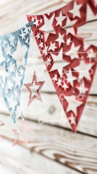 Υπάρχει δυνατότητα προσωποποίησης με δική σας φωτογραφία και προσαρμογής διαστάσεων κατόπιν παραγγελίας. Το συγεκεριμενο puzzle παρουσιαζει Η εικόνα δείχνει μια ζωντανή απεικόνιση από κόκκινες, λευκές και μπλε χάρτινες σημαίες που δένονται μαζί σε μια εορταστική διάταξη. Αυτές οι διακοσμήσεις είναι ιδανικές για πατριωτικές γιορτές όπως η 4η Ιουλίου, προσθέτοντας μια νότα πατριωτισμού σε κάθε σκηνικό. Είτε στο σπίτ
