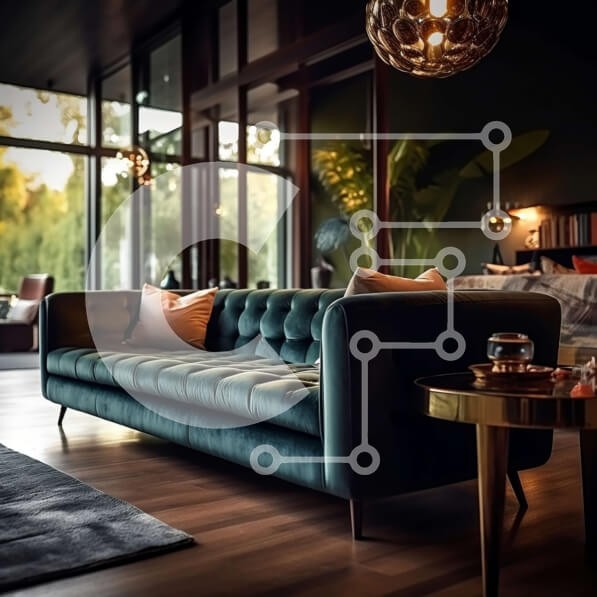Υπάρχει δυνατότητα προσωποποίησης με δική σας φωτογραφία και προσαρμογής διαστάσεων κατόπιν παραγγελίας. Το συγεκεριμενο puzzle παρουσιαζει Αυτή η εικόνα είναι ένα μοντέρνο σαλόνι με πράσινο βελούδινο καναπέ, ξύλινο τραπεζάκι σαλονιού και μεγάλα παράθυρα που αφήνουν το φυσικό φως. Οι τοίχοι είναι βαμμένοι σε σκούρο χρώμα και υπάρχει ένα χαλί στο πάτωμα. Ο συνολικός σχεδιασμός δημιουργεί μια ευρύχωρη και καλά φωτισ