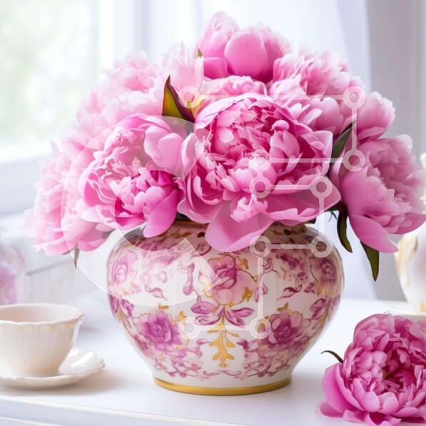 Υπάρχει δυνατότητα προσωποποίησης με δική σας φωτογραφία και προσαρμογής διαστάσεων κατόπιν παραγγελίας. Το συγεκεριμενο puzzle παρουσιαζει Αυτή η εικόνα δείχνει μια επιφάνεια εργασίας με ένα βάζο γεμάτο ροζ λουλούδια, συνοδευόμενο από πολλά φλιτζάνια τσαγιού και πιατάκια. Το σκηνικό δίνει μια ζεστή και φιλόξενη ατμόσφαιρα, ιδανική για να σερβίρετε ποτά ή σνακ. Ένα άδειο φλιτζάνι καφέ συμπληρώνει τη γοητευτική σύν