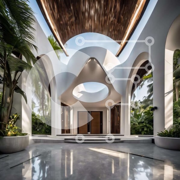 Υπάρχει δυνατότητα προσωποποίησης με δική σας φωτογραφία και προσαρμογής διαστάσεων κατόπιν παραγγελίας. Το συγεκεριμενο puzzle παρουσιαζει Η εικόνα παρουσιάζει έναν μεγάλο, ανοιχτό χώρο με μια τοξωτή είσοδο και πολλά φυτά σε γλάστρες που τον περιβάλλουν. Δύο πόρτες στην είσοδο παρέχουν πρόσβαση στο κύριο σαλόνι, προσφέροντας ευελιξία στο άνοιγμα ή το κλείσιμο τους ανάλογα με την ώρα της ημέρας. Ένα μοναδικό puzz