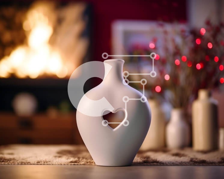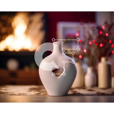 Υπάρχει δυνατότητα προσωποποίησης με δική σας φωτογραφία και προσαρμογής διαστάσεων κατόπιν παραγγελίας. Το συγεκεριμενο puzzle παρουσιαζει Αυτή η εικόνα δείχνει ένα λευκό βάζο με σχέδιο σε σχήμα καρδιάς τοποθετημένο σε ένα τραπέζι μπροστά από ένα τζάκι. Το δωμάτιο είναι διακοσμημένο με πολλά άλλα βάζα, δημιουργώντας μια οπτικά ελκυστική και φιλόξενη ατμόσφαιρα. Ένα μοναδικό puzzle που συνδυάζει ποιότητα, αισθητι