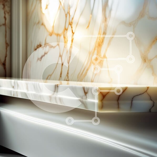 Υπάρχει δυνατότητα προσωποποίησης με δική σας φωτογραφία και προσαρμογής διαστάσεων κατόπιν παραγγελίας. Το συγεκεριμενο puzzle παρουσιαζει Αυτή η εικόνα παρουσιάζει έναν κομψό μαρμάρινο πάγκο με γυαλιστερό φινίρισμα. Ο πάγκος έχει ορθογώνιο σχήμα και συνδυάζει λευκά και κίτρινα χρώματα, με το κίτρινο να είναι πιο εμφανές. Τοποθετείται σε τοίχο και από πάνω έχει ορθογώνιο ράφι, επίσης από το ίδιο μάρμαρο. Το ράφι