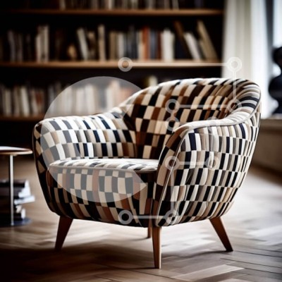 Υπάρχει δυνατότητα προσωποποίησης με δική σας φωτογραφία και προσαρμογής διαστάσεων κατόπιν παραγγελίας. Το συγεκεριμενο puzzle παρουσιαζει Αυτή η εικόνα παρουσιάζει μια ασπρόμαυρη καρό πολυθρόνα σε ένα καλά φωτισμένο δωμάτιο με δάπεδο από μασίφ ξύλο και ένα ράφι με βιβλία. Η πολυθρόνα έχει ξύλινο σκελετό και τοποθετείται στη γωνία του δωματίου. Δίπλα του υπάρχει ένα τραπεζάκι με ένα βάζο με λουλούδια. Το φυσικό φ