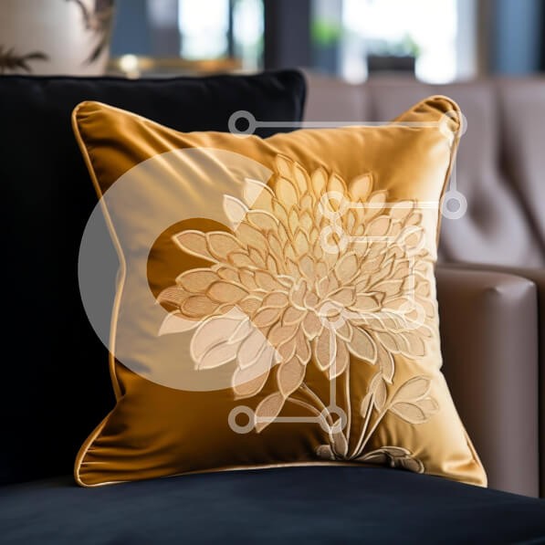 Υπάρχει δυνατότητα προσωποποίησης με δική σας φωτογραφία και προσαρμογής διαστάσεων κατόπιν παραγγελίας. Το συγεκεριμενο puzzle παρουσιαζει Η εικόνα απεικονίζει ένα μαξιλάρι σε χρυσό χρώμα με περίπλοκο φλοράλ σχέδιο τοποθετημένο σε μαύρο καναπέ σε ένα σαλόνι. Αρκετές καρέκλες είναι τοποθετημένες γύρω από τον καναπέ, υποδεικνύοντας μια πιθανή διάταξη καθισμάτων. Ένα μοναδικό puzzle που συνδυάζει ποιότητα, αισθητικ