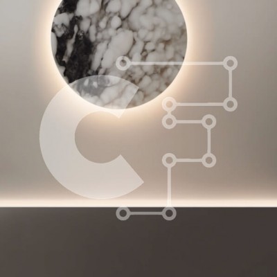 Υπάρχει δυνατότητα προσωποποίησης με δική σας φωτογραφία και προσαρμογής διαστάσεων κατόπιν παραγγελίας. Το συγεκεριμενο puzzle παρουσιαζει Αυτή η εικόνα παρουσιάζει ένα κυκλικό φωτιστικό από μάρμαρο, τοποθετημένο στον τοίχο μπροστά από ένα άδειο λευκό δωμάτιο. Το φωτιστικό φωτίζεται από πίσω, δημιουργώντας μια όμορφη και φιλόξενη ατμόσφαιρα. Αρκετές καρέκλες τοποθετούνται περιμετρικά του δωματίου, προσθέτοντας στ