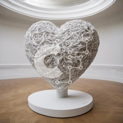 Υπάρχει δυνατότητα προσωποποίησης με δική σας φωτογραφία και προσαρμογής διαστάσεων κατόπιν παραγγελίας. Το συγεκεριμενο puzzle παρουσιαζει Αυτή η εικόνα παρουσιάζει ένα λευκό γλυπτό σε σχήμα καρδιάς τοποθετημένο σε ένα υπερυψωμένο βάθρο στο κέντρο ενός εσωτερικού δωματίου. Στο χώρο υπάρχουν και άλλα αντικείμενα όπως αγγεία, βιβλία και μικρά ειδώλια. Ένα μοναδικό puzzle που συνδυάζει ποιότητα, αισθητική και εμπει