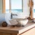 Υπάρχει δυνατότητα προσωποποίησης με δική σας φωτογραφία και προσαρμογής διαστάσεων κατόπιν παραγγελίας. Το συγεκεριμενο puzzle παρουσιαζει Αυτή η εικόνα είναι ένα μοντέρνο μπάνιο με ξύλινο νιπτήρα και μεγάλο παράθυρο με θέα στον ωκεανό. Ο νεροχύτης είναι από λευκή πορσελάνη και έχει στρογγυλό μπολ με βρύση χρωμίου. Ο πάγκος είναι κατασκευασμένος από ξύλο και έχει φυσικό φινίρισμα. Στη σχάρα κρέμονται δύο πετσέτες